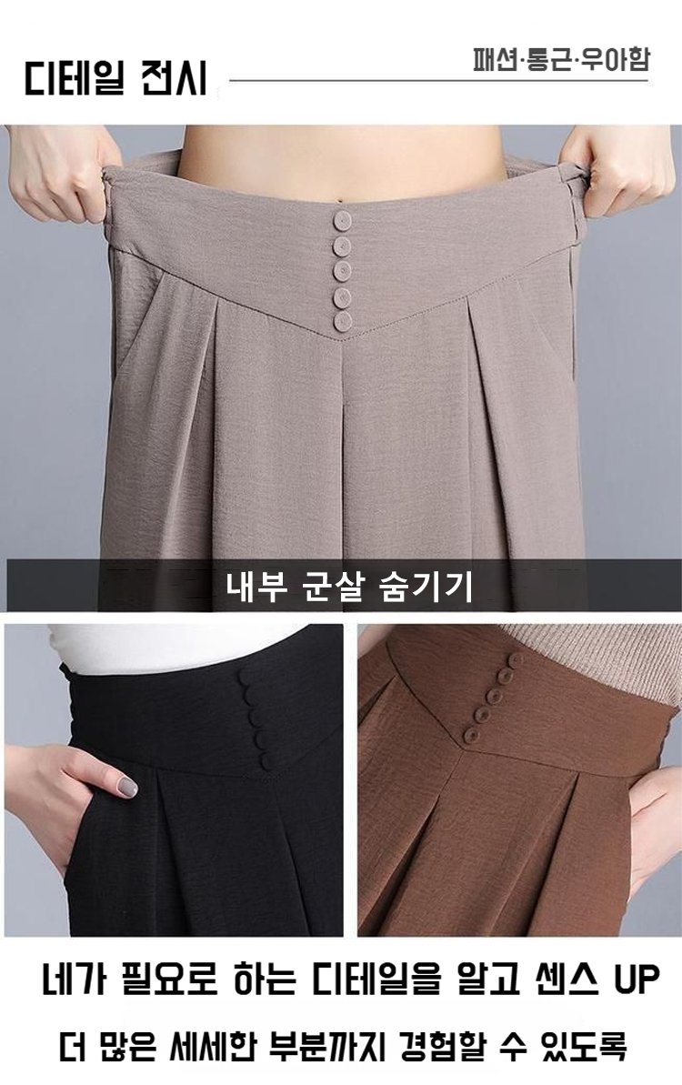 트렌디한 와이드 팬츠 허리 밴딩 디자인