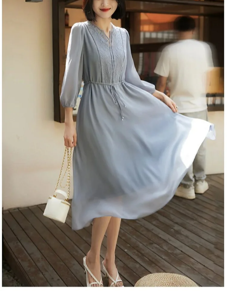 우아한 실크 소재의 여성 원피스